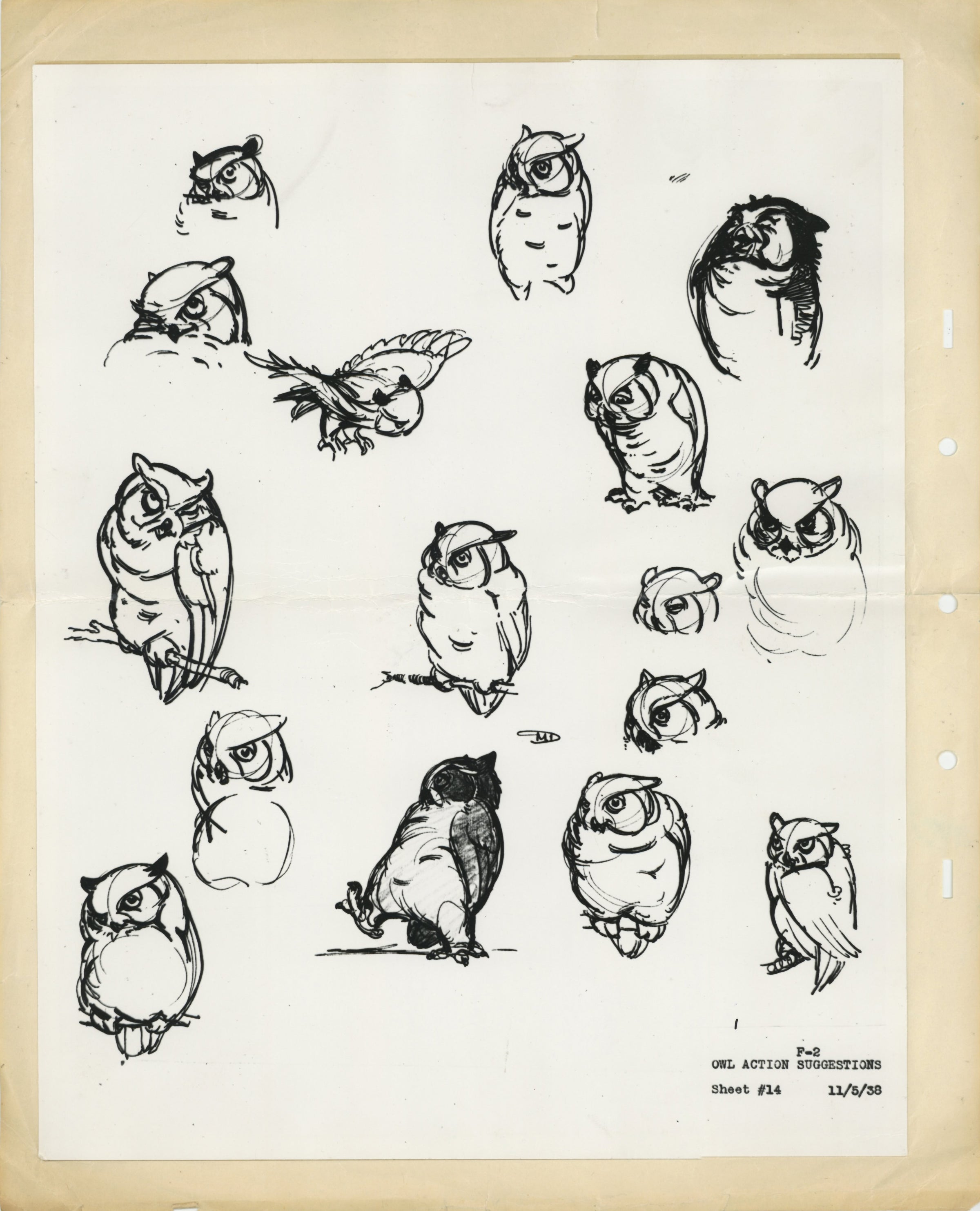 NOTES: This model sheet has been attached to a sheet of 16 field animation paper, traditionally used for creating production drawings. There is a light amount of production wear, including several small tears along the edges of the backing paper and a horizontal crease in the model sheet. The date of the model sheet has been reproduced in the bottom right corner: November 5th, 1938.