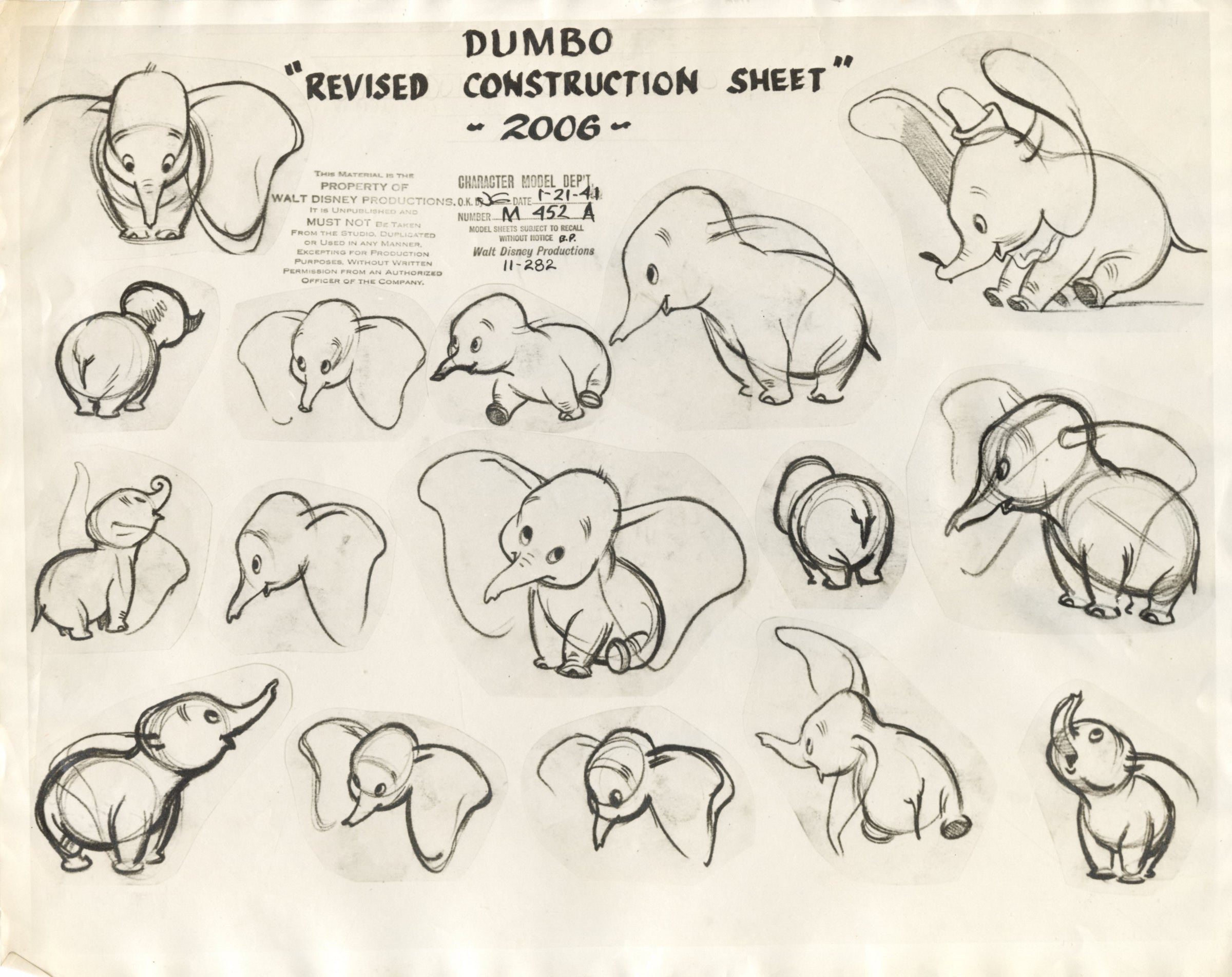 ABOUT THE MEDIUM: A model sheet is a group of character drawings illustrating different poses and expressions of a cartoon character. Because a number of artists worked on a single cartoon, these sheets were circulated to the animators to give a uniform look and feel to a character throughout a production.