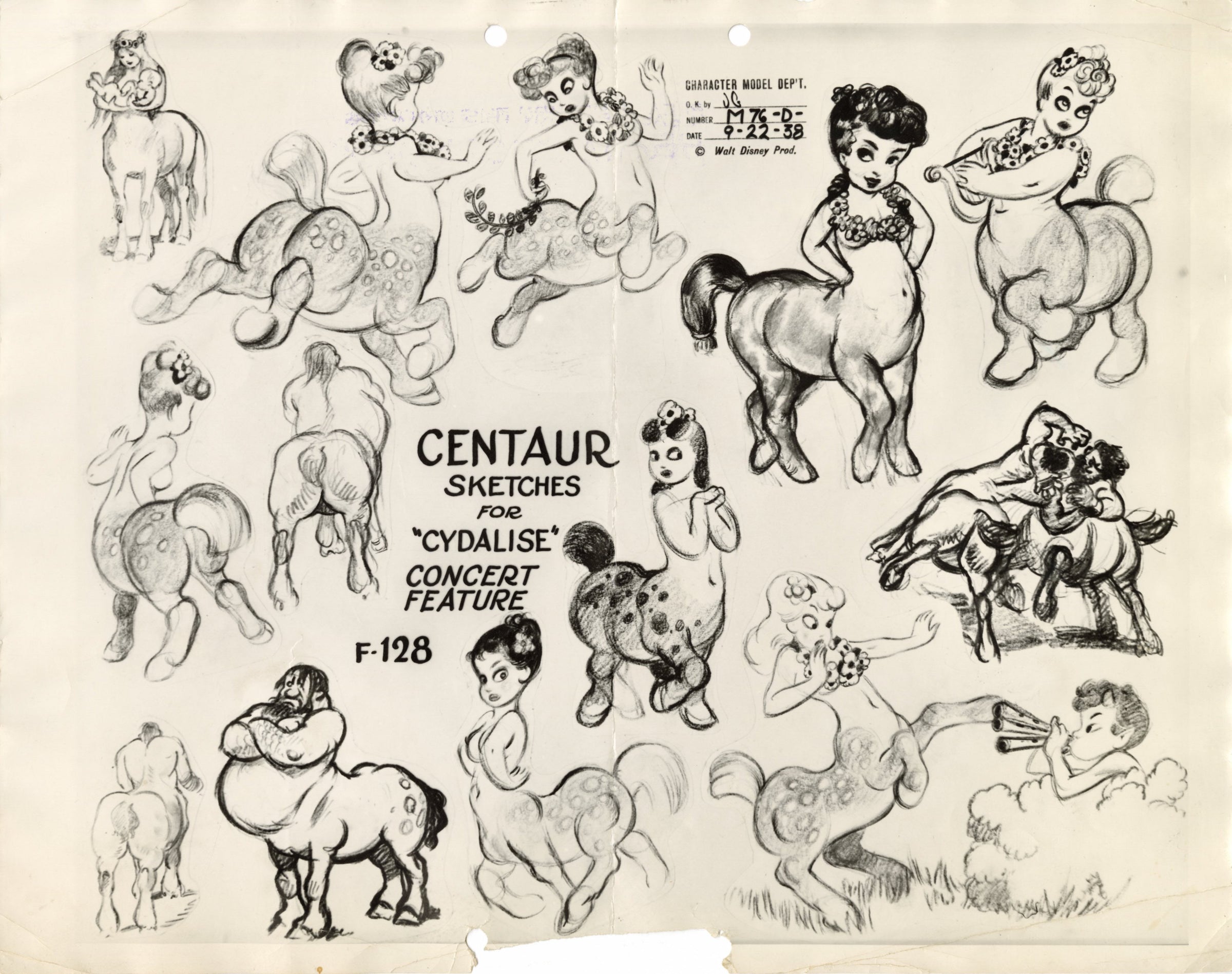The title of this model sheet refers to Gabriel Pierné's "Cydalise,” music from the ballet "Cydalise et le chèvre-pied" which was the original choice for the segment of Fantasia now known as "The Pastoral Symphony."