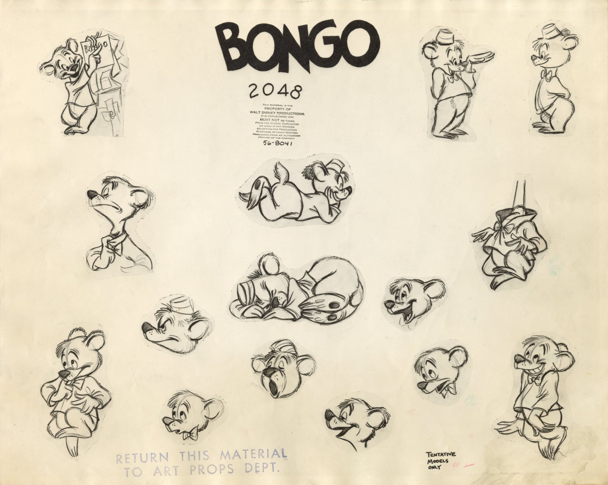ABOUT THE MEDIUM: Photostat Model Sheets are reference guides used by animators to ensure consistency in character design, proportions, and expressions throughout a film. These printed sheets typically feature multiple poses, facial expressions, and turnarounds of a character, often photocopied from finalized drawings by lead animators. Model sheets help maintain uniformity in animation by providing a standard reference for all artists working on a character, preventing visual discrepancies between different scenes.