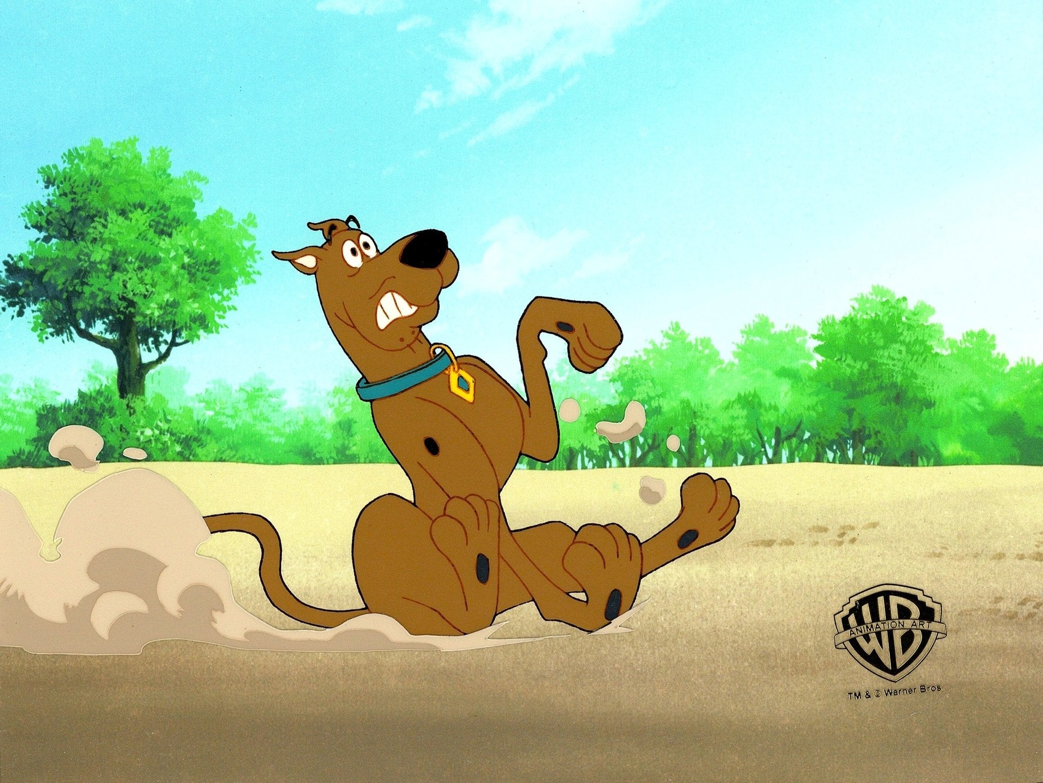 The Hanna-Barbera cartoon, Scooby-Doo, Where Are You? was launched in 1969 and has had the longest run of a cartoon series. Over the years, the franchise has been adapted into 19 TV series (on CBS, ABC, the WB, Cartoon Network and Boomerang), more than 40 animated films, and two live action movies, one of which grossed $275 million worldwide. The stories feature brainiac Velma, jock Fred, fashionista Daphne, hippie Shaggy, and the talking Great Dane Scooby-Doo, who would pile into their Mystery Machine van and hit the road searching for weird phenomena to solve. This piece and comes with a certificate of authenticity.