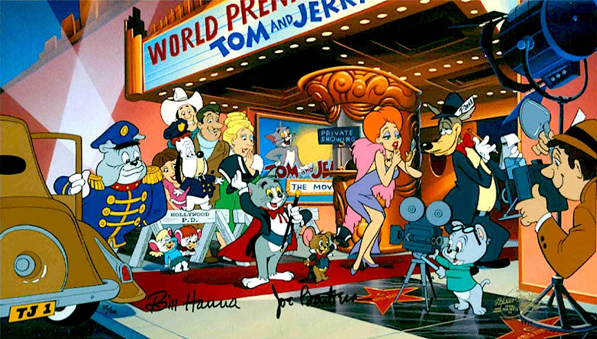 ABOUT THE IMAGE: No one completes a limited edition cel like the characters of MGM. Wild and zany, Droopy, Red Hot, Tom, and Jerry, touch off this image of an excursion to a Tom and Jerry movie premiere with vivid color and action.