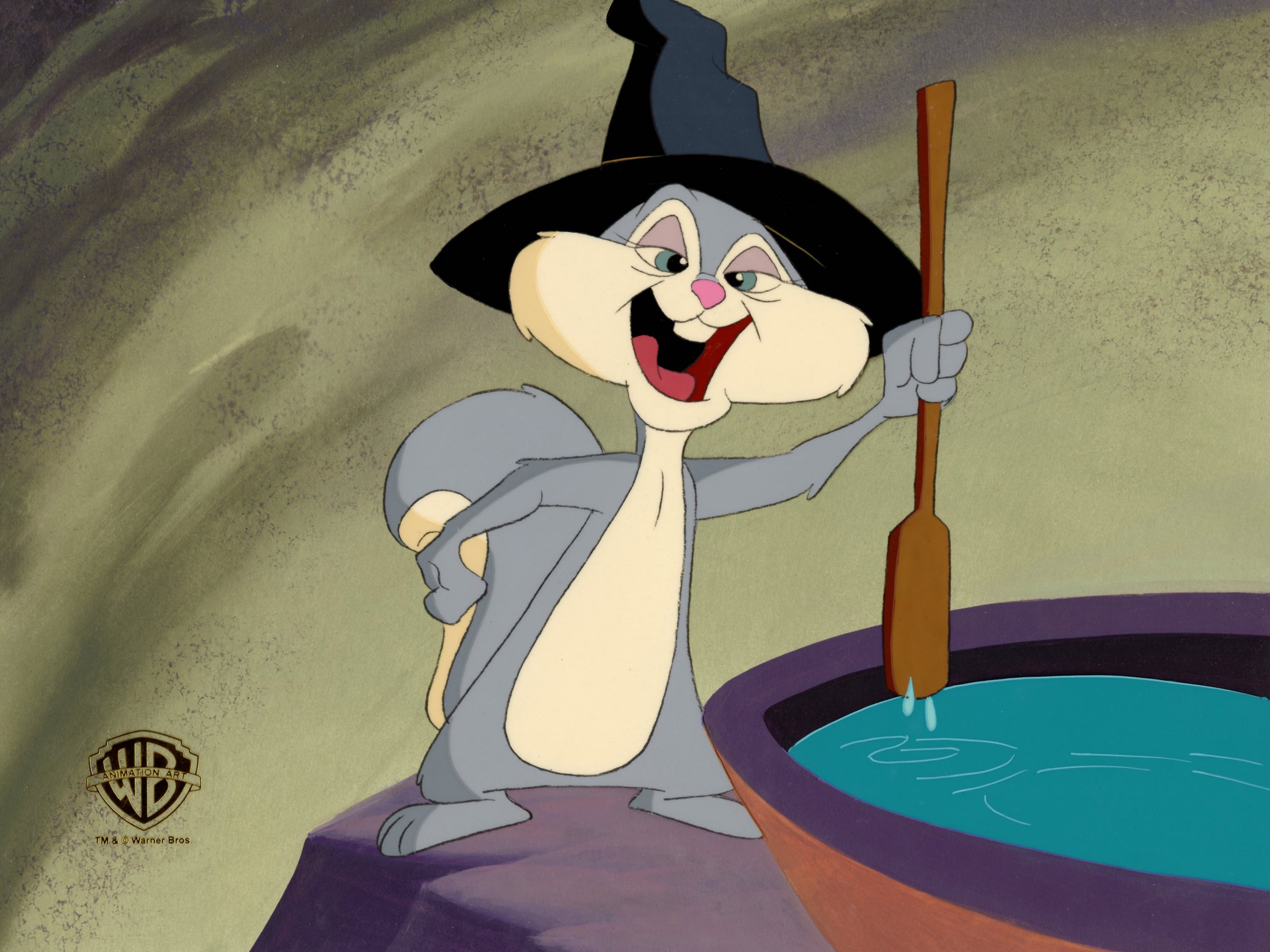ABOUT THE MEDIUM: Original production cels are one-of-a-kind pieces of art that were used in the creation of an animated film or television show. Each has been hand-painted by studio artists on a piece of celluloid acetate, and has been photographed over a background painting to create a frame of the finished production.