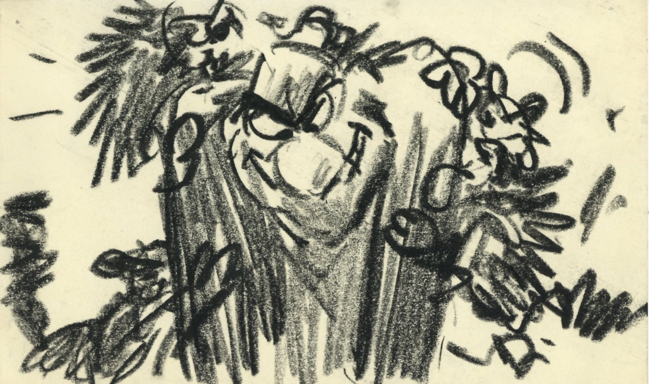 ABOUT THE IMAGE: This storyboard showcases the creativity involved in the making of The Aristocats. It was created for climactic sequence starting at about 1:12:52 when Edgar locks Duchess and her kittens in a trunk, ready to ship them off for good. O'Malley, Roquefort, Frau, and even Scat Cat and the Alley Cats help to stop him and make sure he's the one who is sent to Timbuktu. The artist of this storyboards is thought to be Vance Gerry (1929 - 2005), a storyboard, layout, and character artist at Disney for nearly 50 years.