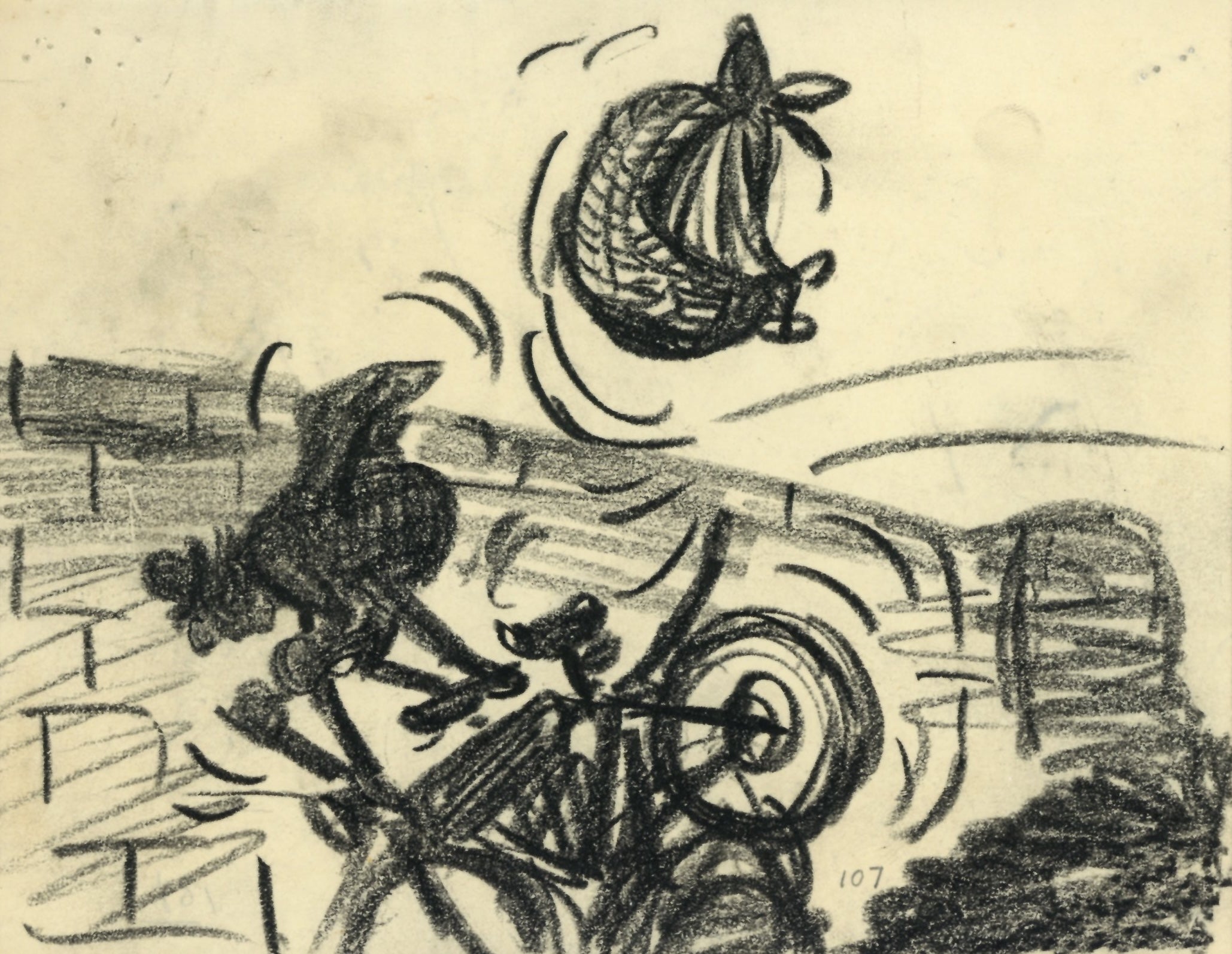 ABOUT THE IMAGE: This storyboard showcases the creativity involved in the making of The Aristocats. It was created for scene starting at about 19:49, where Edgar loses Duchess and her kittens on his bicycle. The artist of this storyboards is thought to be Vance Gerry (1929 - 2005), a storyboard, layout, and character artist at Disney for nearly 50 years.