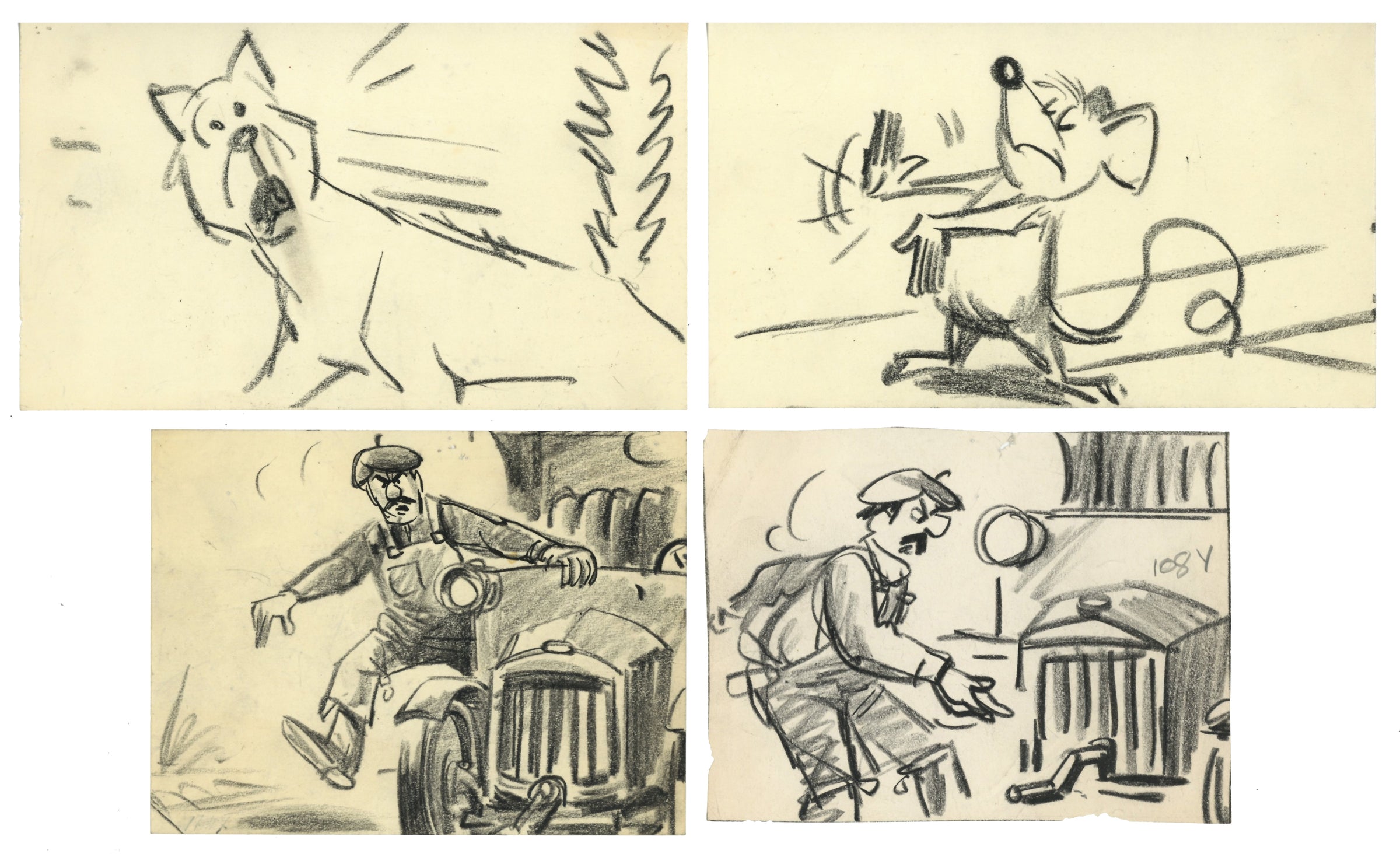 Aristocats Original Storyboard Drawings (Set of 4): Thomas O'Malley, Roquefort, Truck Drivers