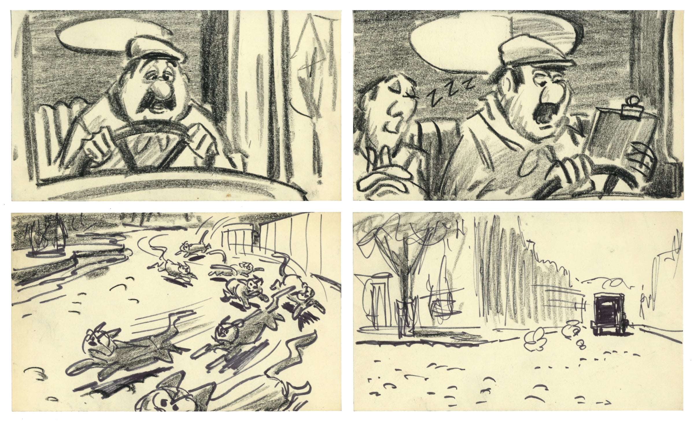 Aristocats Original Storyboard Drawings (Set of 4): Truck Drivers, Alley Cats