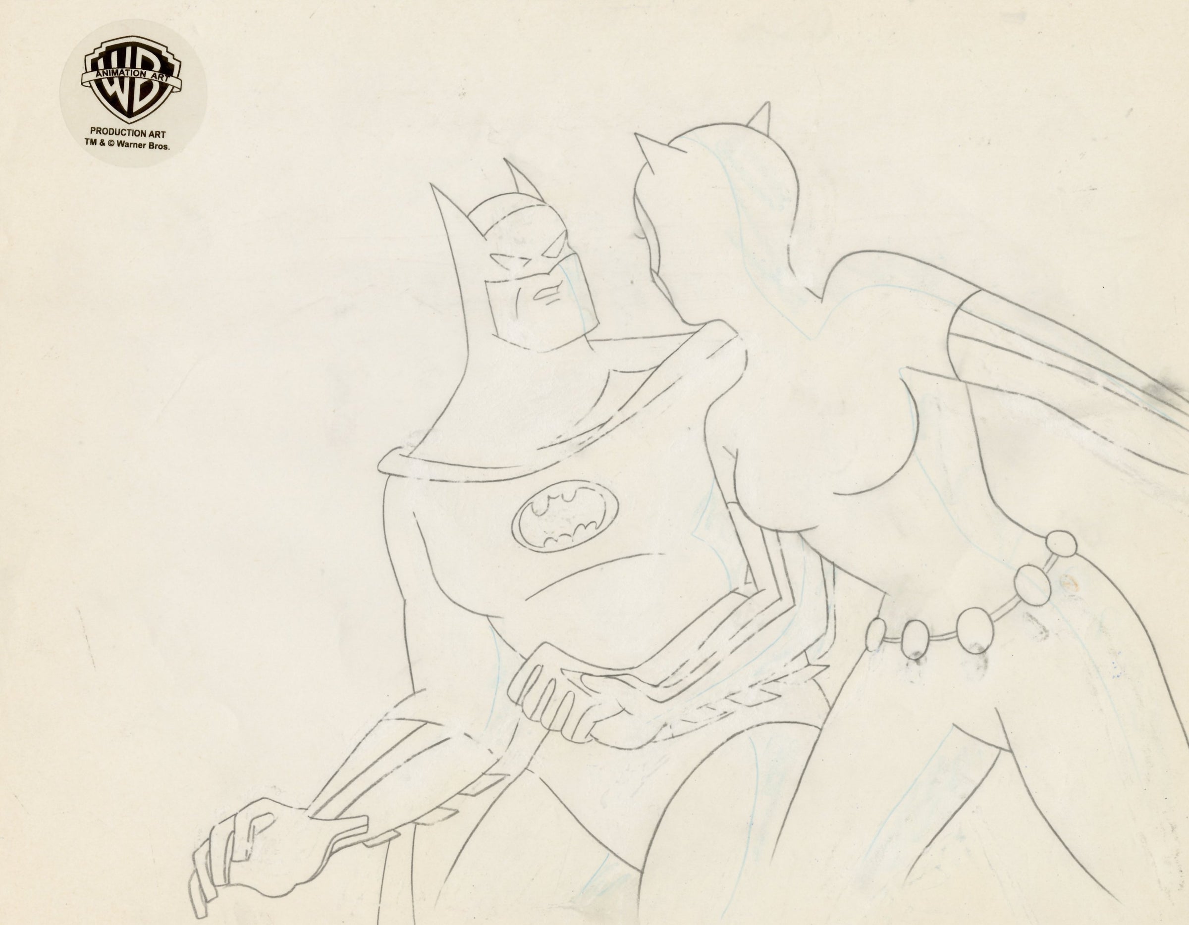Batman The Animated Series Original Production Cel with Matching Drawing: Batman, Catwoman