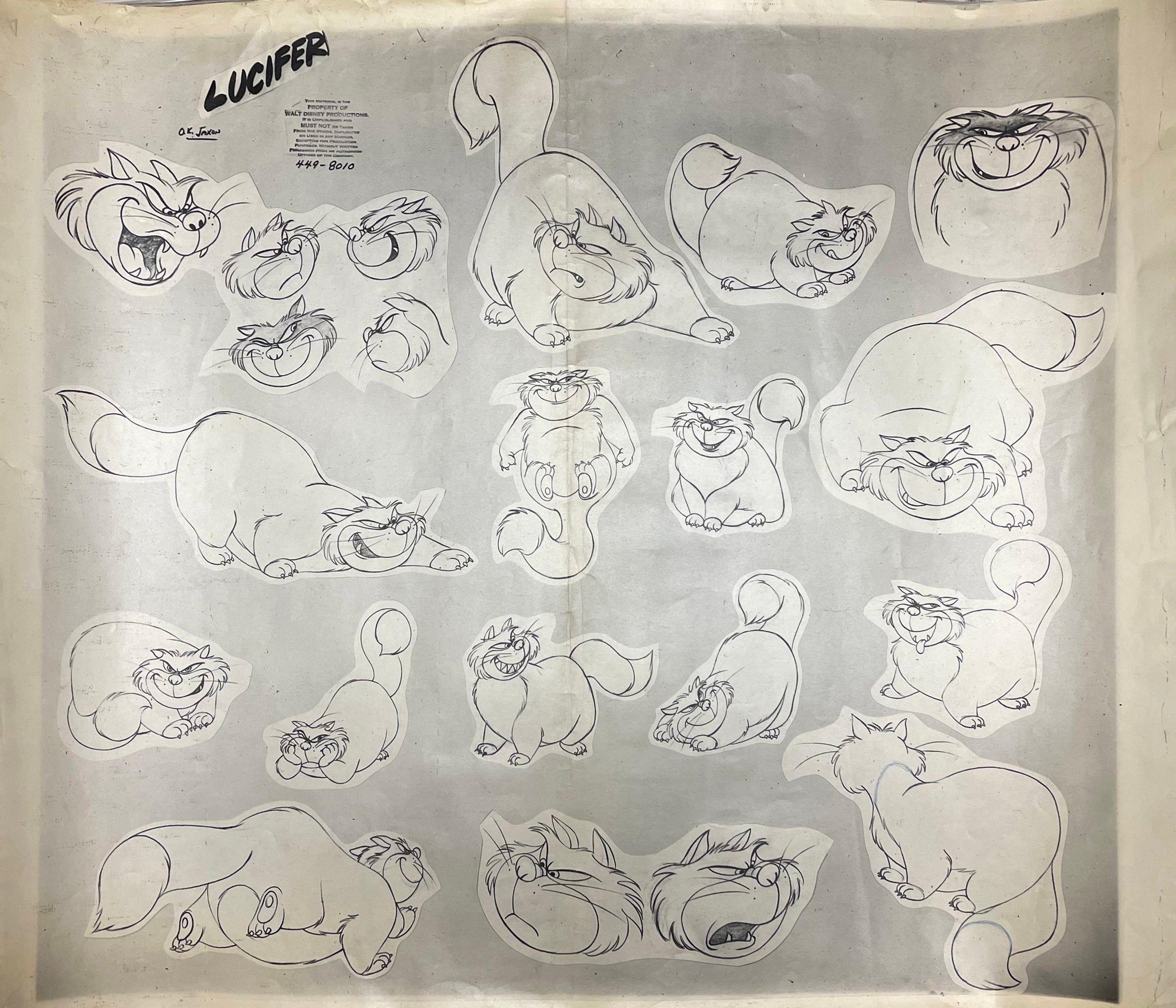 NOTES: "OK Jaxon," (written by director Wilfred Jackson) has been reproduced below the title of this model sheet. This piece shows signs of moderate production wear: center crease, edge wrinkling, and small tears. Due to its size, this piece will be shipped rolled in a tube