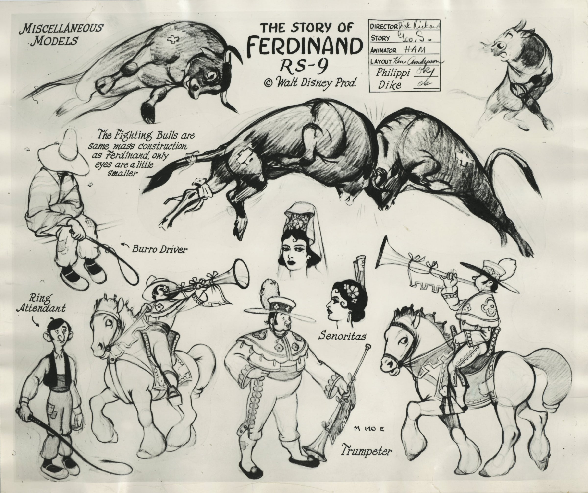 Ferdinand the Bull Original Stat Model Sheet: Miscellaneous Character Designs