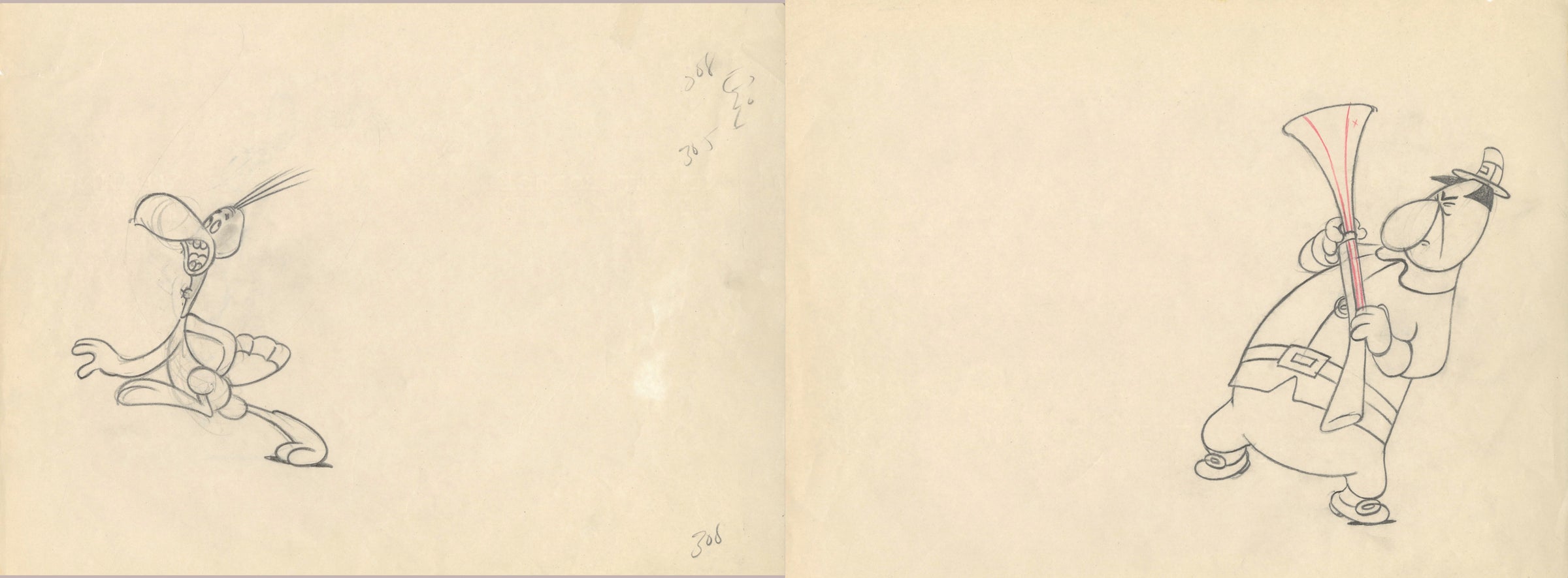 Jerky Turkey Original Production Drawing Pair: Pilgrim, Turkey