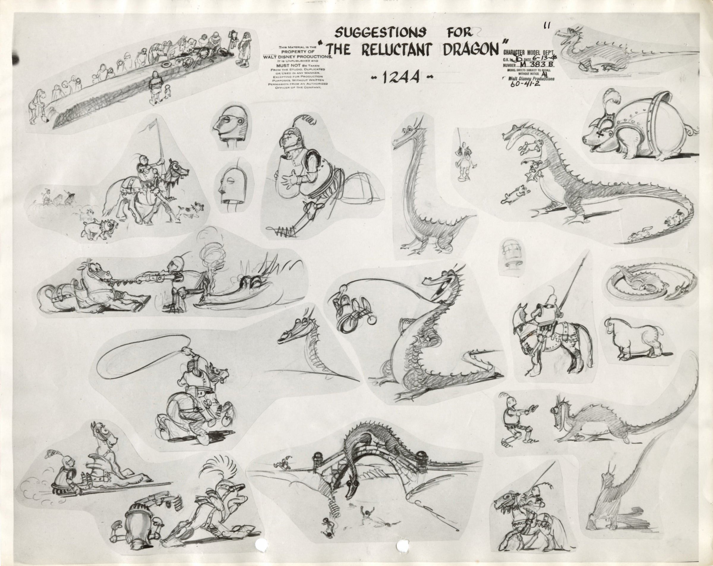 ABOUT THE IMAGE: The Reluctant Dragon is a 1941 American film produced by Walt Disney, directed by Alfred Werker, and released by RKO Radio Pictures on June 27, 1941. Essentially a tour of the then-new Walt Disney Studios facility in Burbank, California, the film stars radio comedian Robert Benchley and many Disney staffers such as Ward Kimball, Fred Moore, Norman Ferguson, Clarence Nash, and Walt Disney, all as themselves.