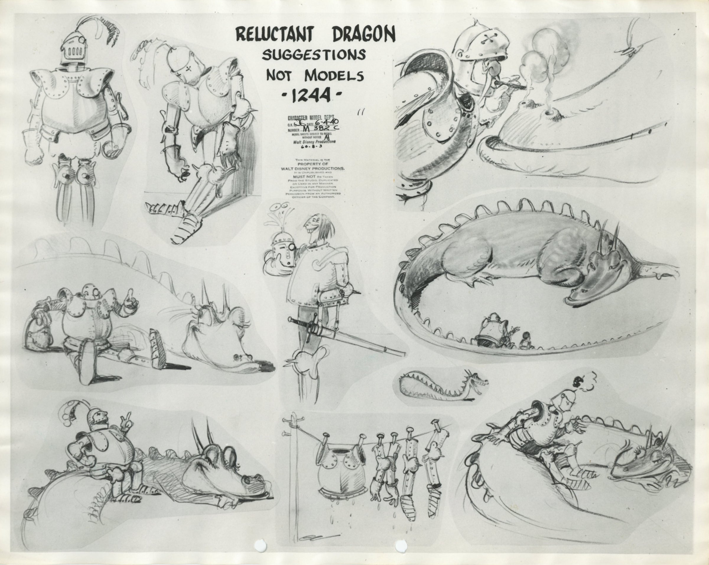 ABOUT THE IMAGE: The Reluctant Dragon is a 1941 American film produced by Walt Disney, directed by Alfred Werker, and released by RKO Radio Pictures on June 27, 1941. Essentially a tour of the then-new Walt Disney Studios facility in Burbank, California, the film stars radio comedian Robert Benchley and many Disney staffers such as Ward Kimball, Fred Moore, Norman Ferguson, Clarence Nash, and Walt Disney, all as themselves.