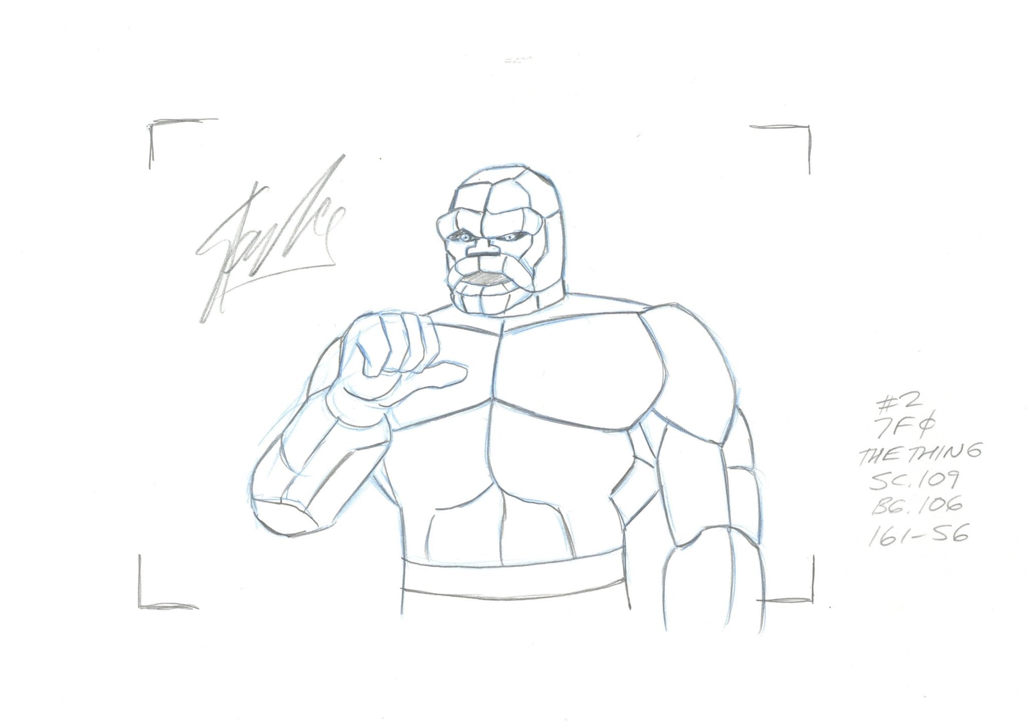 Up for sale from the series is an original production cel on printed background with matching original production drawing of The Thing. Set comes signed by Stan Lee and comes un framed with COA