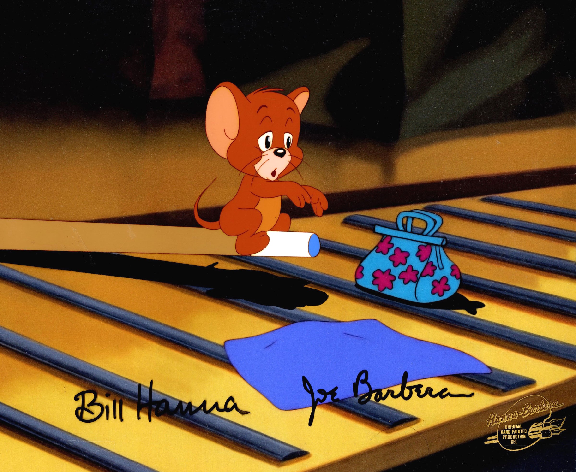 ABOUT THE MEDIUM: Original Production Cels are one-of-a-kind pieces of art that were used in the creation of an animated film or television show. Each has been hand-painted by studio artists on a piece of celluloid acetate, and has been photographed over a background painting to create a frame of the finished production.