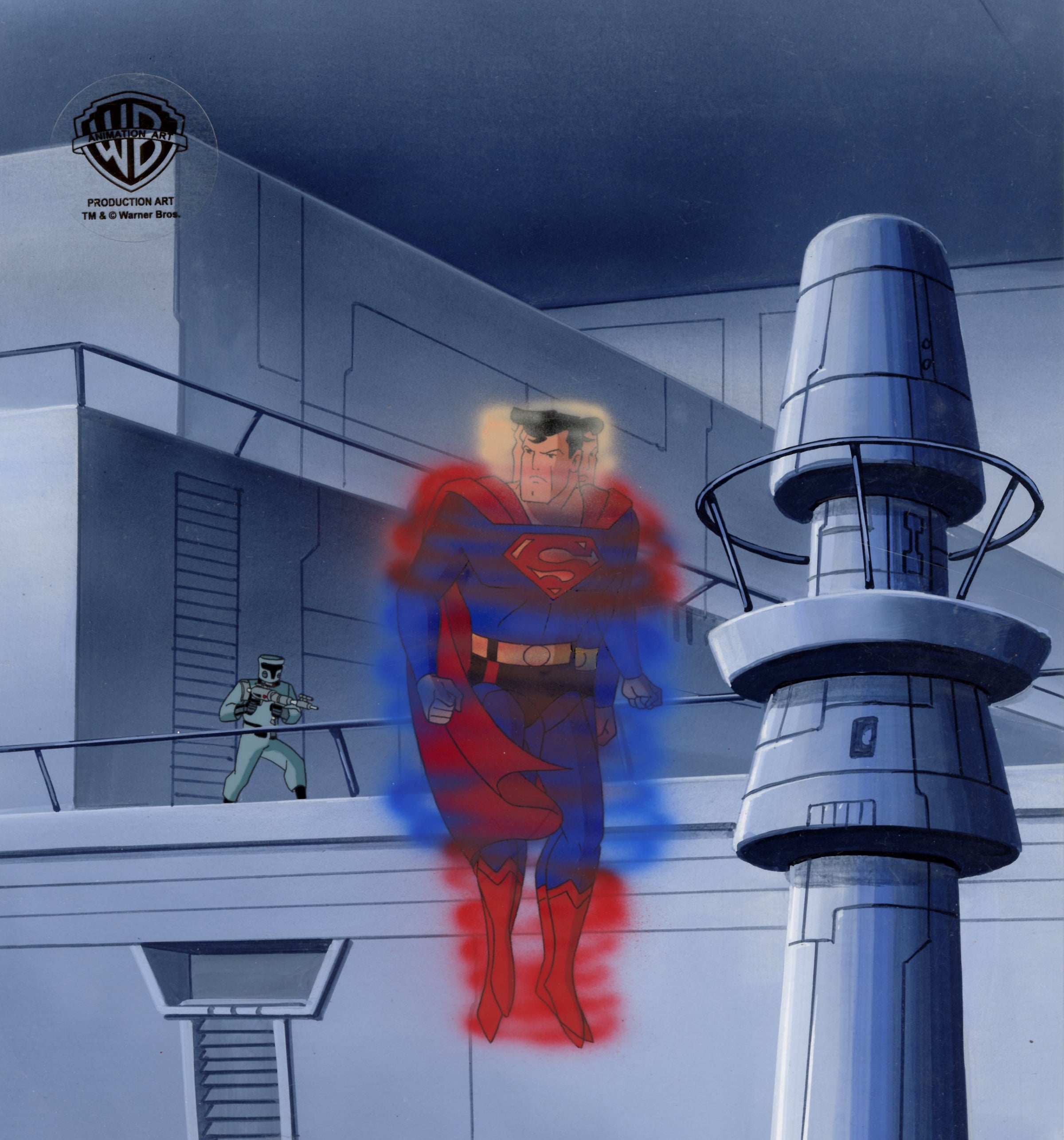Superman The Animated Series Original Production Cel on Original Background: Superman