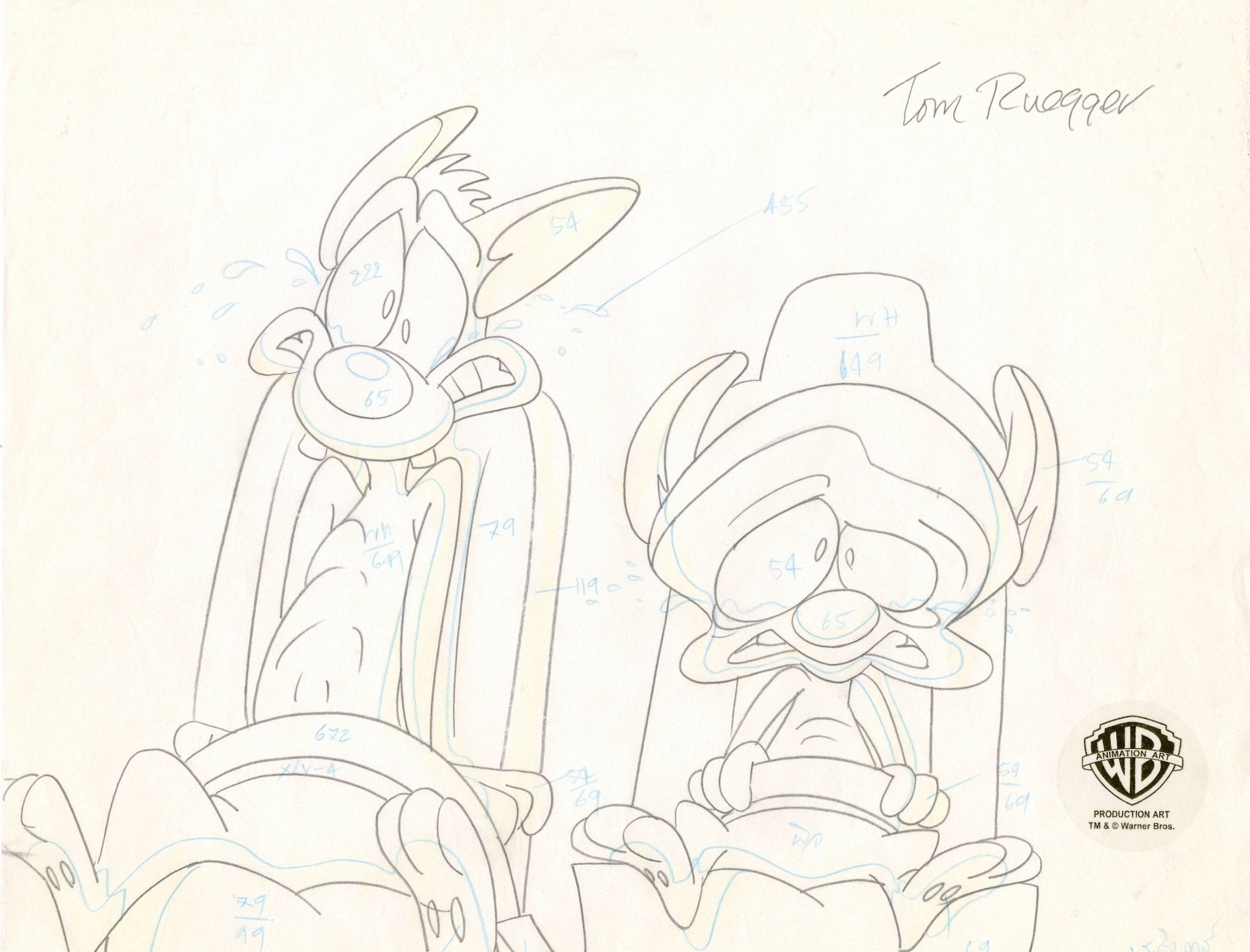ABOUT THE IMAGE: Pinky and the Brain is a cartoon that follows a self-proclaimed genius, The Brain, and his dimwitted sidekick, Pinky, as they try to conquer the world. Pinky and the Brain was the first animated television series to be presented in Dolby Surround. It was created by Tom Ruegger and the fourth collaboration between Steven Spielberg's production company, Amblin Entertainment and Warner Bros. Animation. The characters first appeared in 1993 as a recurring skit on the show Animaniacs. Thanks to its popularity it was later spun off as a series. There were 66 episodes produced. This piece comes with a certificate of authenticity.