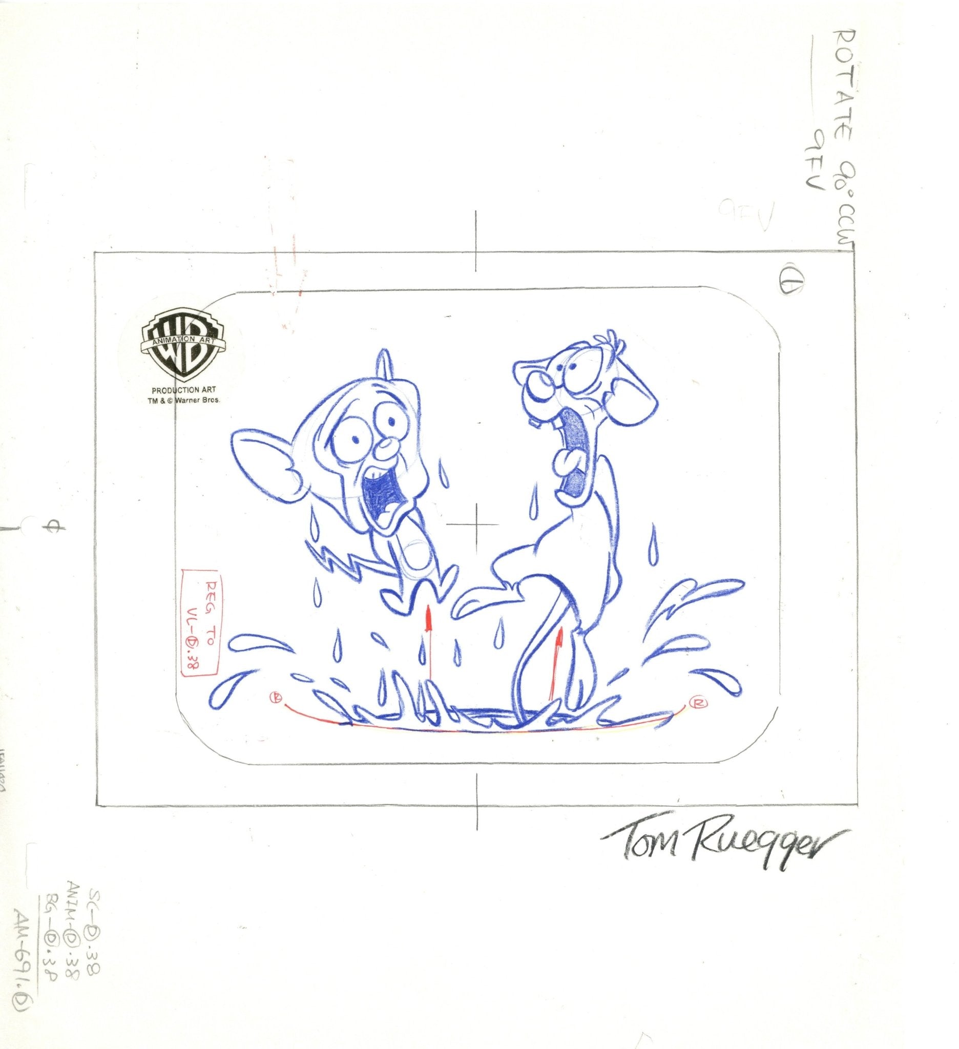 ABOUT THE IMAGE: Pinky and the Brain is a cartoon that follows a self-proclaimed genius, The Brain, and his dimwitted sidekick, Pinky, as they try to conquer the world. Pinky and the Brain was the first animated television series to be presented in Dolby Surround. It was created by Tom Ruegger and the fourth collaboration between Steven Spielberg's production company, Amblin Entertainment and Warner Bros. Animation. The characters first appeared in 1993 as a recurring skit on the show Animaniacs. Thanks to its popularity it was later spun off as a series. There were 66 episodes produced. This piece comes with a certificate of authenticity.